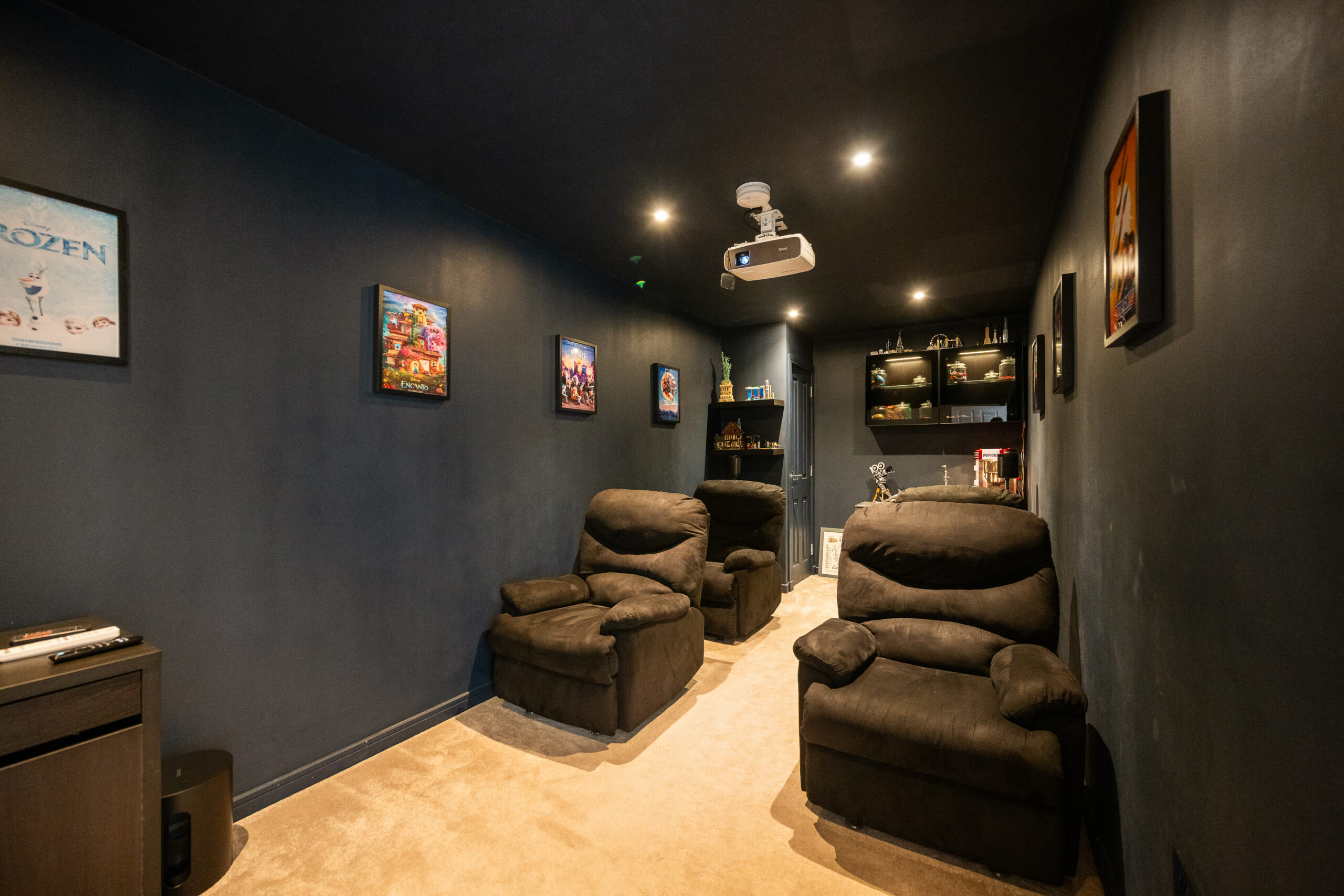 Adjoining the kitchen a practical utility room keeps laundry appliances neatly tucked away with direct access to the garden via a side door. Adding even more versatility the garage has been beautifully converted into a show stopping home cinema room. Designed for relaxation and entertainment it’s perfect for cozy film nights but equally offers flexibility as a home office or playroom.