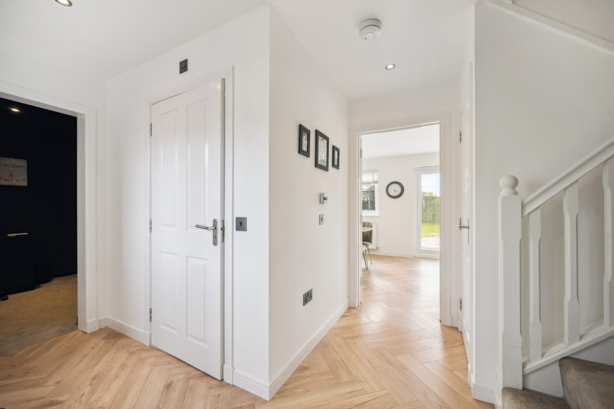 Stepping inside you are greeted by a bright and spacious entrance hallway styled in neutral tones that set the stage for the elegance that flows throughout the home. Immediately to your left the upgraded W/C makes a statement with designer Lusso fixtures giving the feel of a boutique hotel, a small but luxurious detail that elevates the everyday. An understairs cupboard provides practical storage for coats and shoes ensuring a clutter free entrance.
