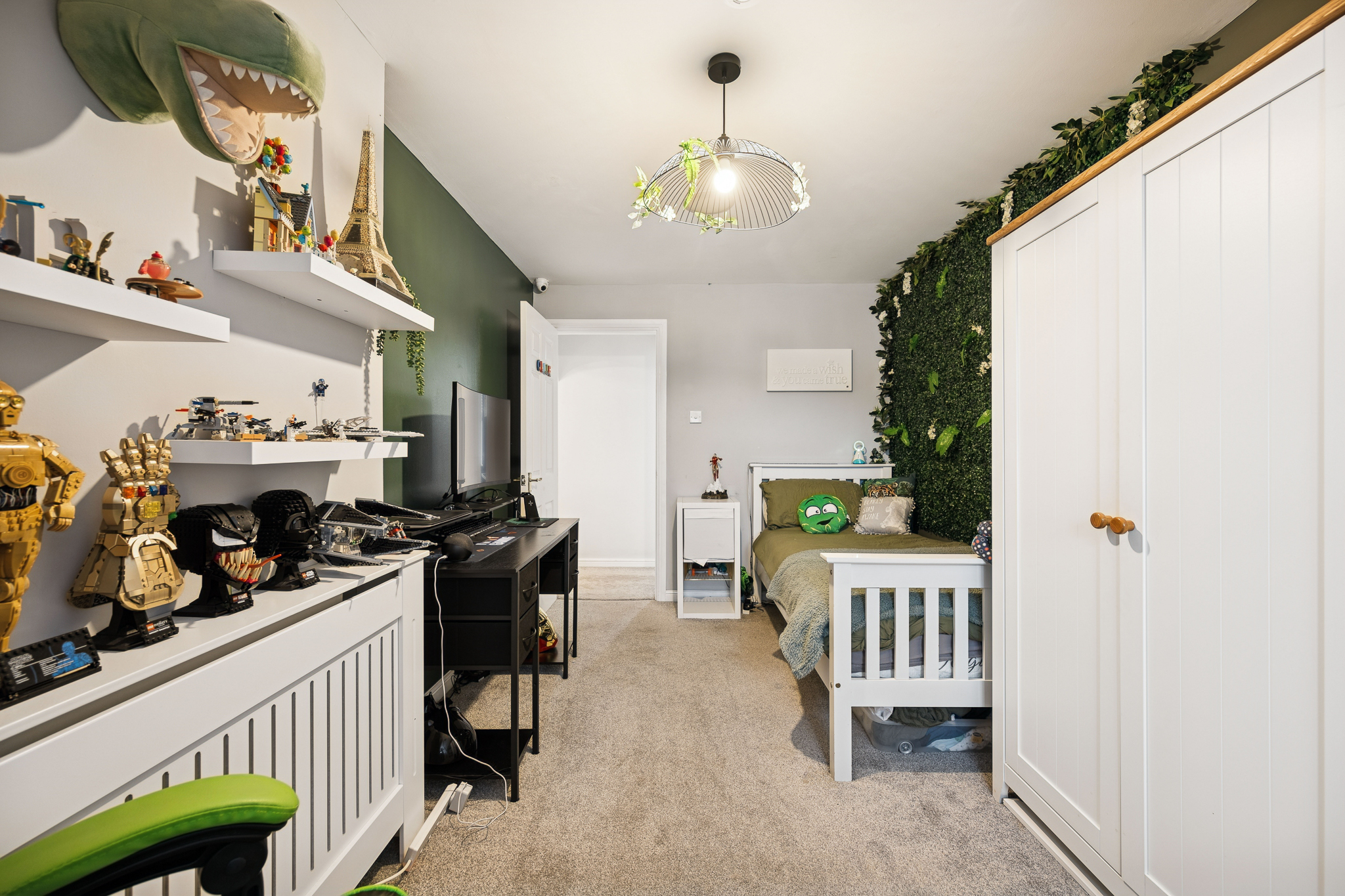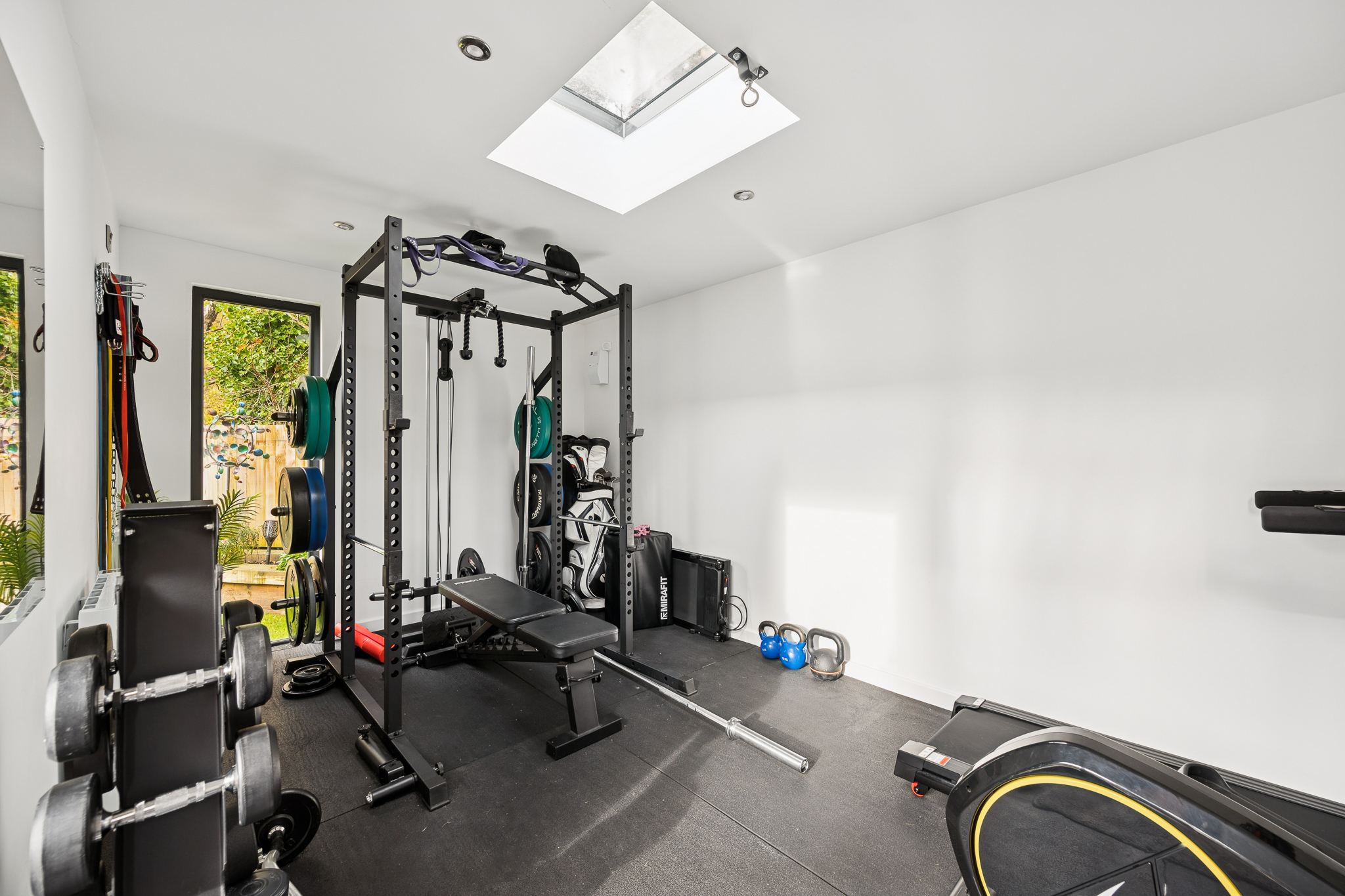 The garage conversion enhances the home’s versatility, currently serving as a family/playroom but equally suited to use as a home office, cinema room or sixth bedroom.