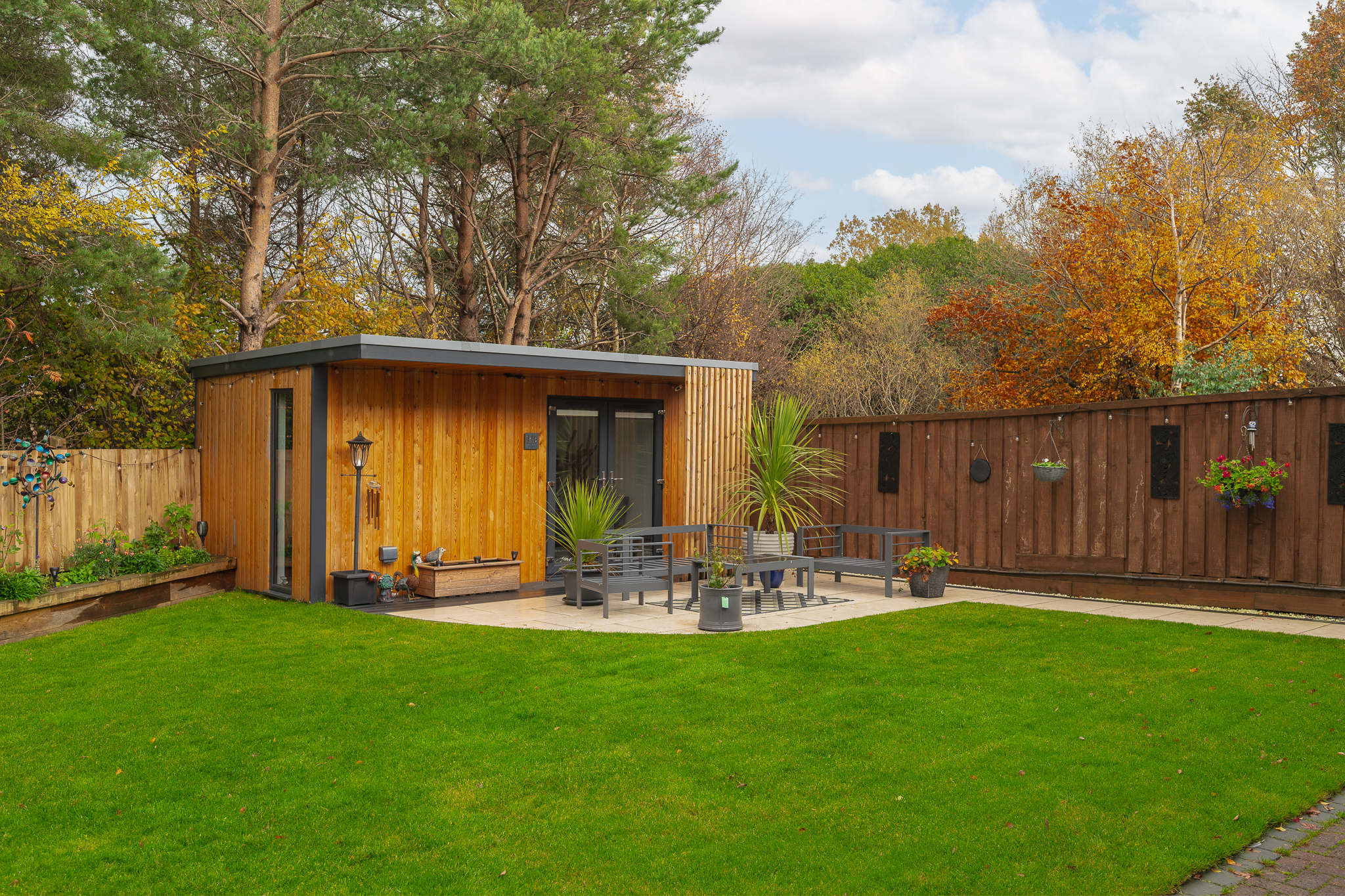 Outside, this property truly excels. The rear garden has been beautifully landscaped and carefully maintained, offering complete privacy. A manicured lawn, paved patio and decked entertaining area create a series of outdoor zones to enjoy. The fully insulated summer house, currently used as a home gym, is complete with heating and lighting - providing a stylish and functional extension of the home.