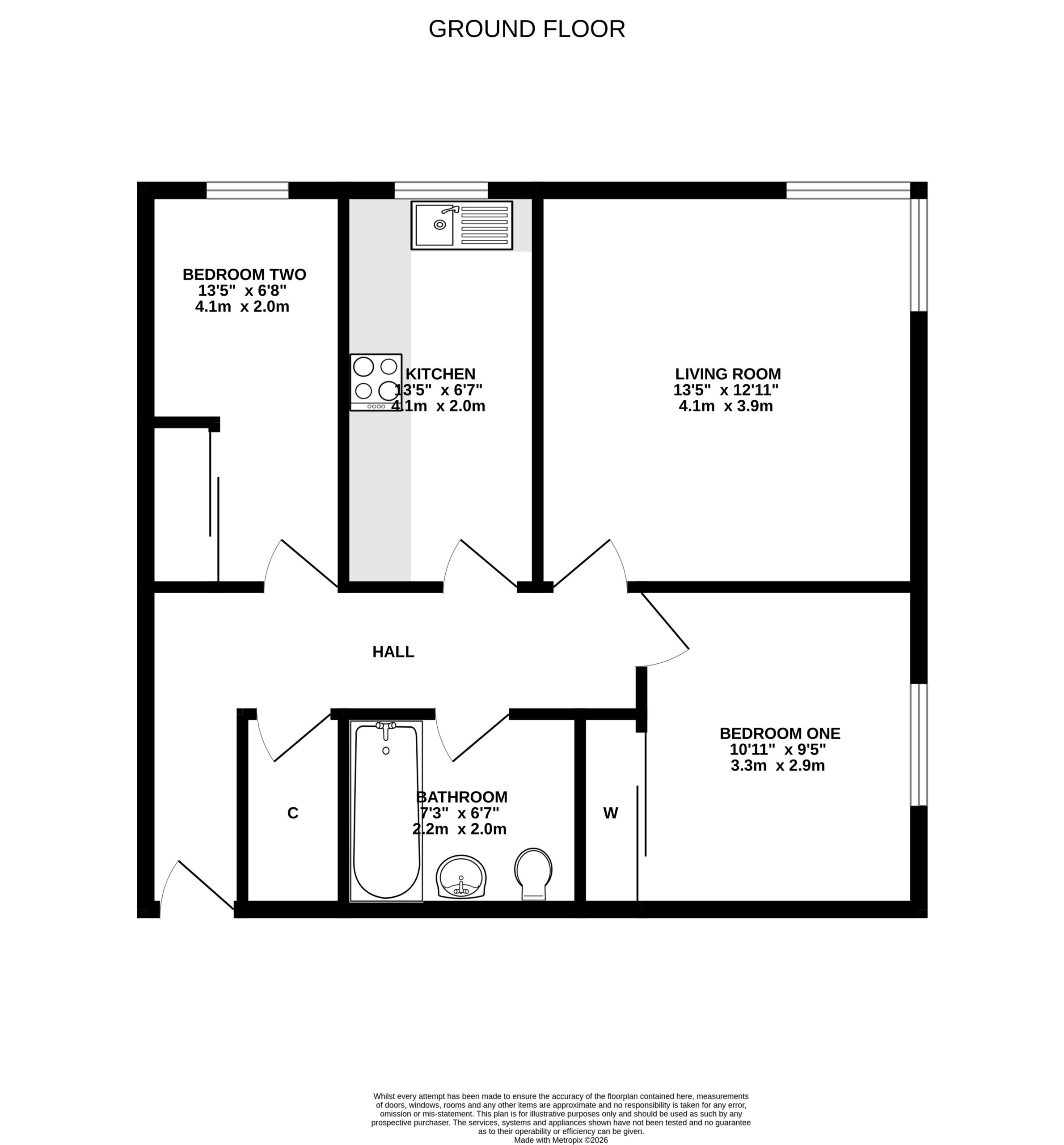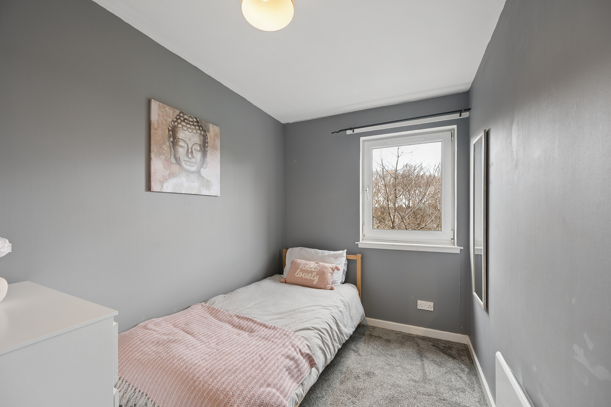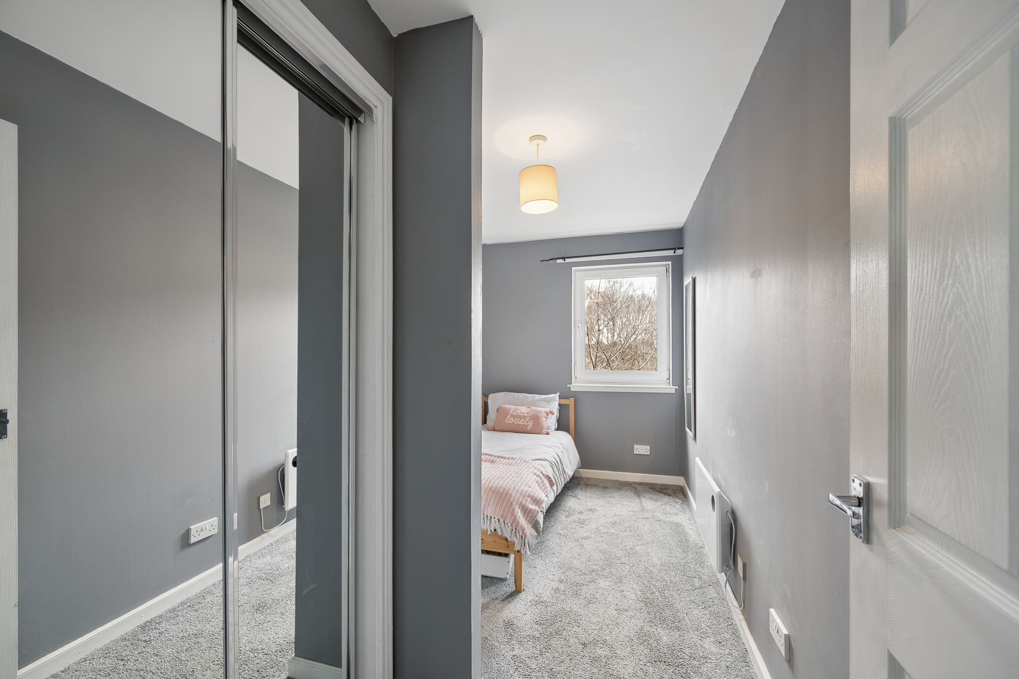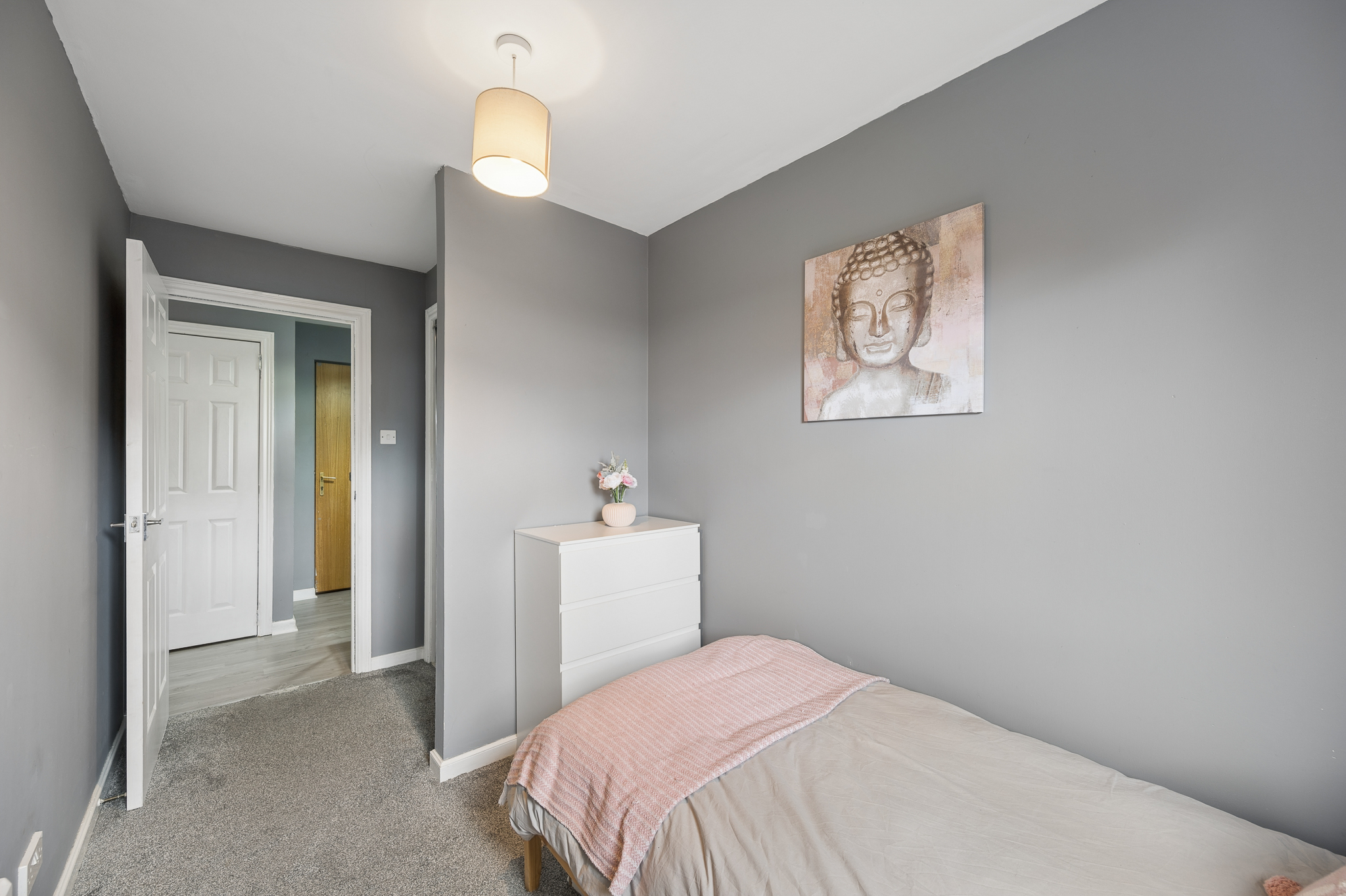 The accommodation opens into a welcoming L-shaped hallway, providing access to all rooms. The first room on the left is the second bedroom, a versatile space which comfortably accommodates a single bed or lends itself perfectly as a home office or study.