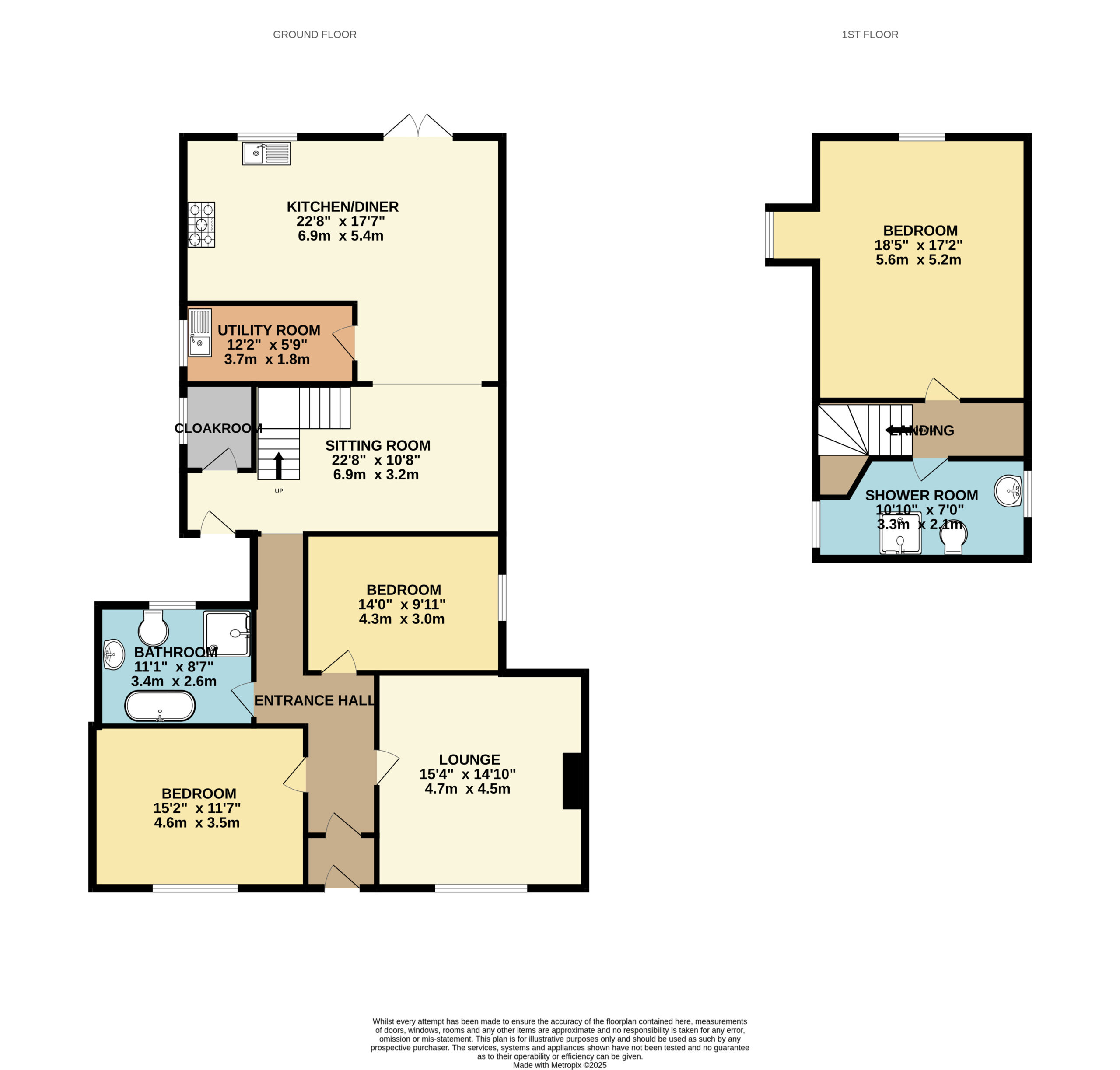 To the left, the utility room provides an invaluable extension to the kitchen, complete with a second sink and ample space for a freestanding washing machine and tumble dryer, keeping the main living areas beautifully serene.