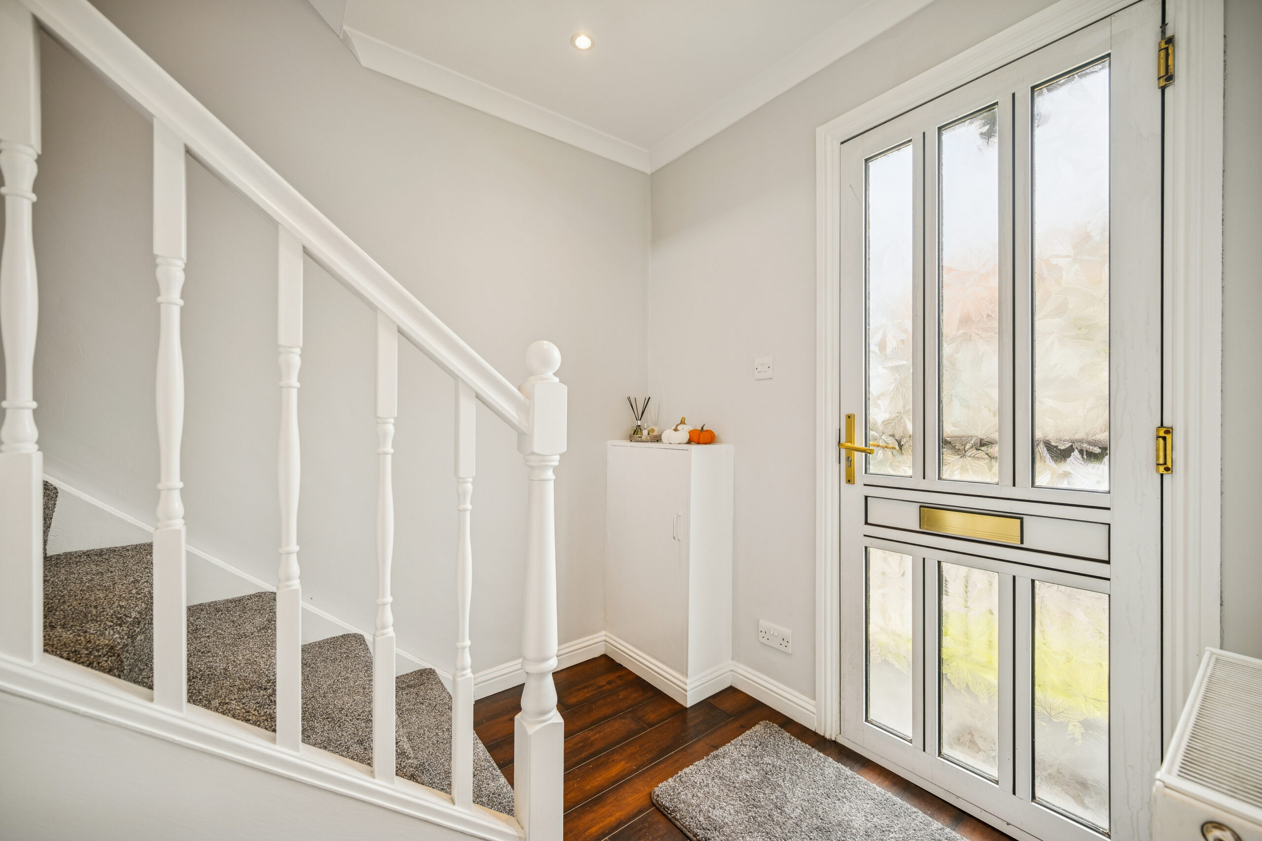 Back inside, the main hallway also benefits from a large utility style storage cupboard, ideal for housing a washing machine, tumble dryer, or other essentials.