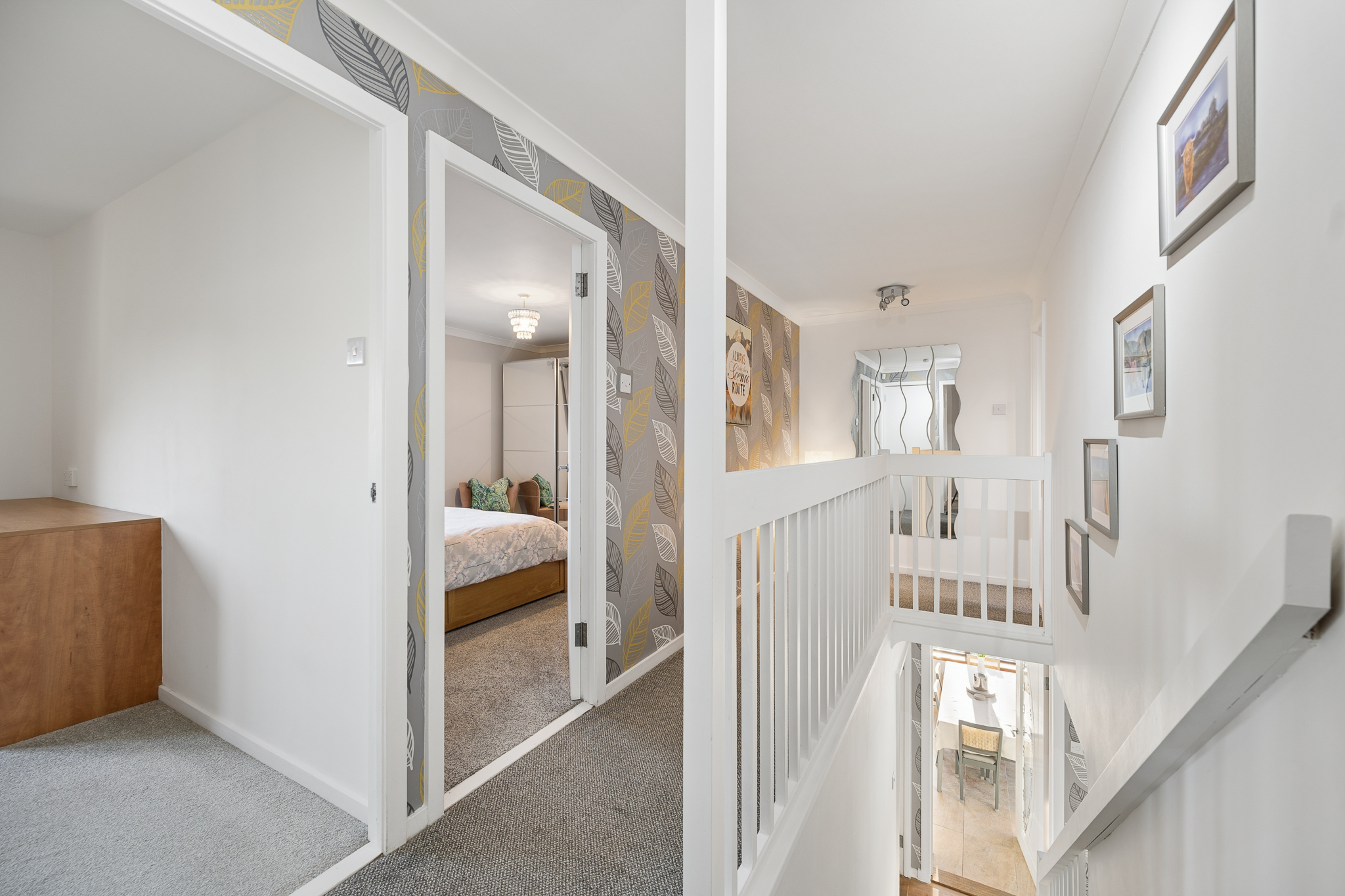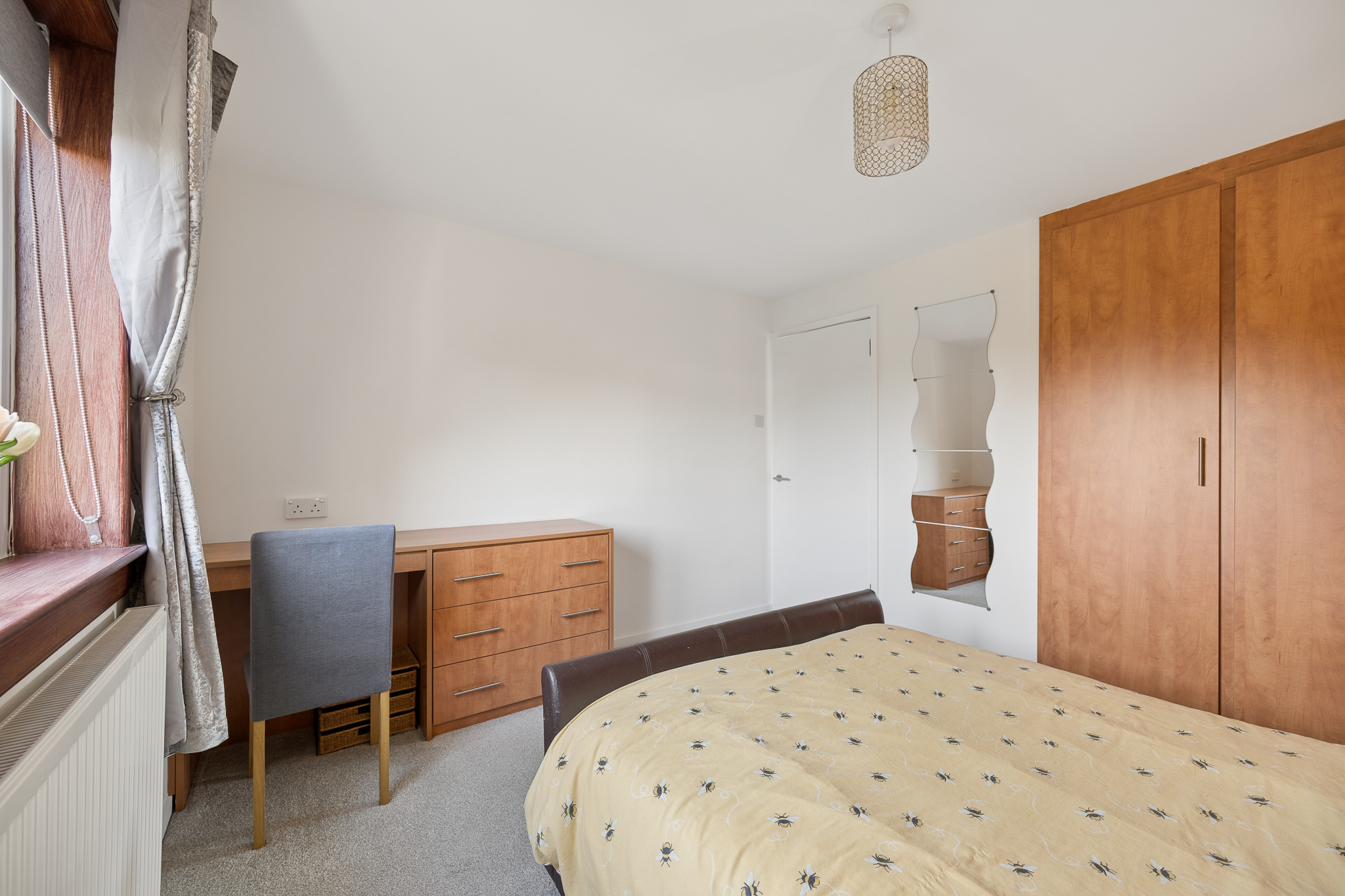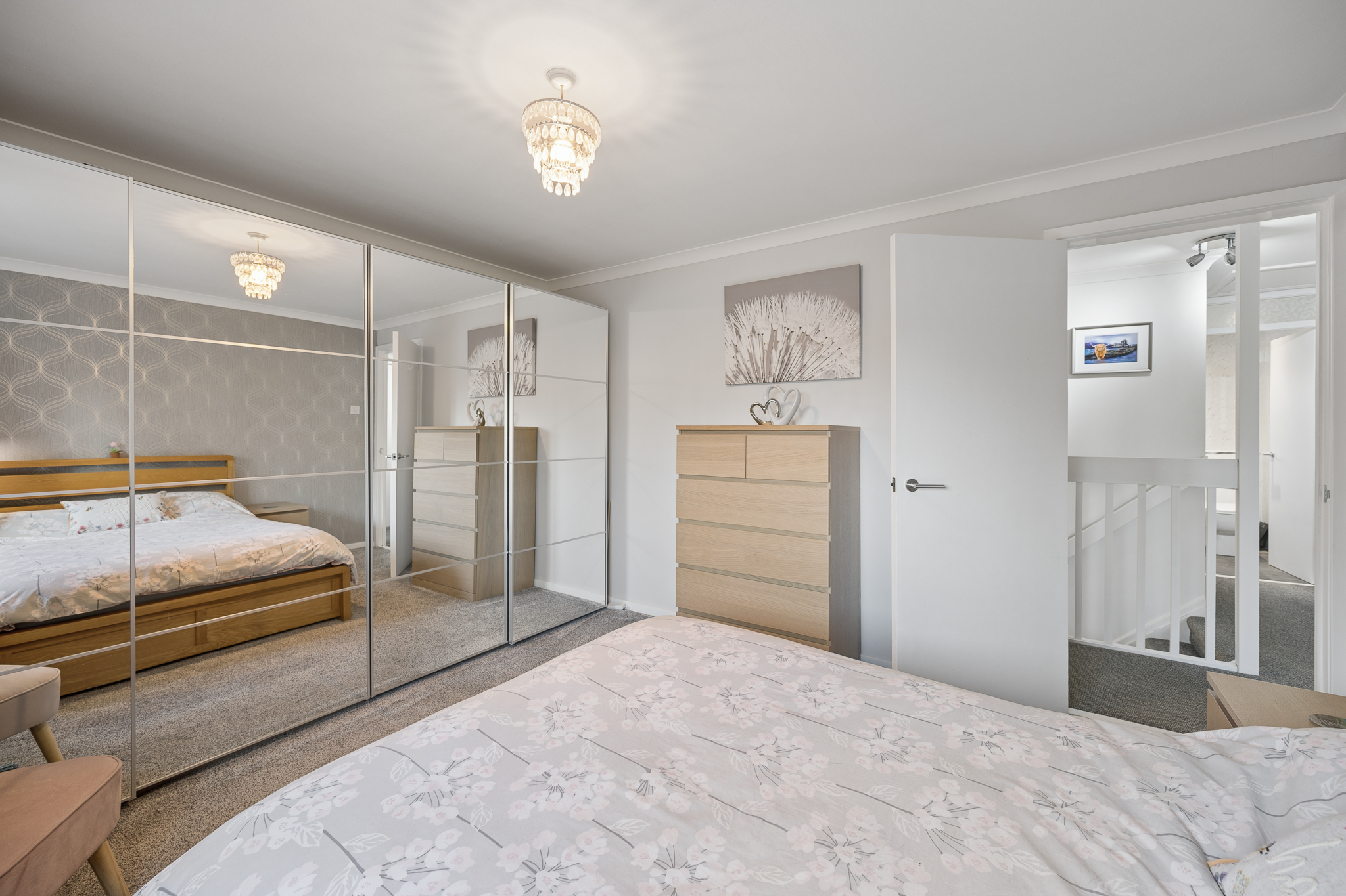 Upstairs, the property continues with the home’s fresh and modern feel. The principal bedroom is a bright and generously sized room, decorated in calming neutral tones to create a relaxing retreat. Mirrored wardrobes provide excellent storage while enhancing the sense of space and light within the room. The remaining 3 double bedrooms are all well proportioned and versatile, offering comfortable accommodation that can easily adapt to family needs, whether as additional bedrooms, guest rooms, a nursery or home office.
