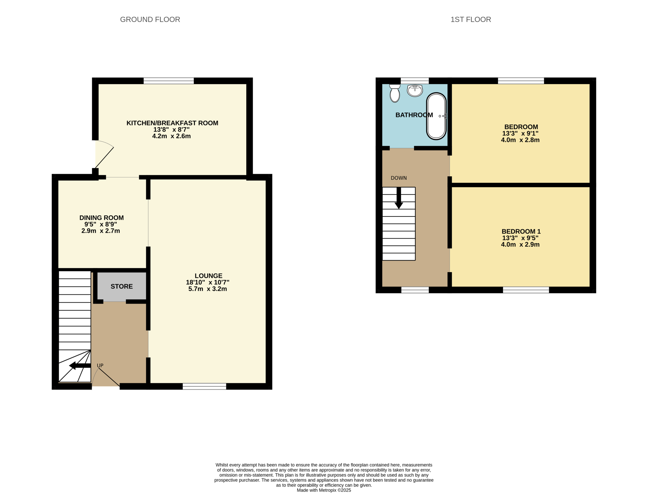 Upstairs, the first floor features two generously sized double bedrooms, both capable of comfortably accommodating king size beds. Bedroom one, positioned to the rear, benefits from a triple aspect window that floods the room with natural light. This room offers excellent floor space for a large wardrobe, bedside cabinets and additional furniture. Bedroom two, located at the front of the home, also accommodates a king-size bed with ease and provides ample space for storage, making it ideal as a principal bedroom, guest room, or children’s room.